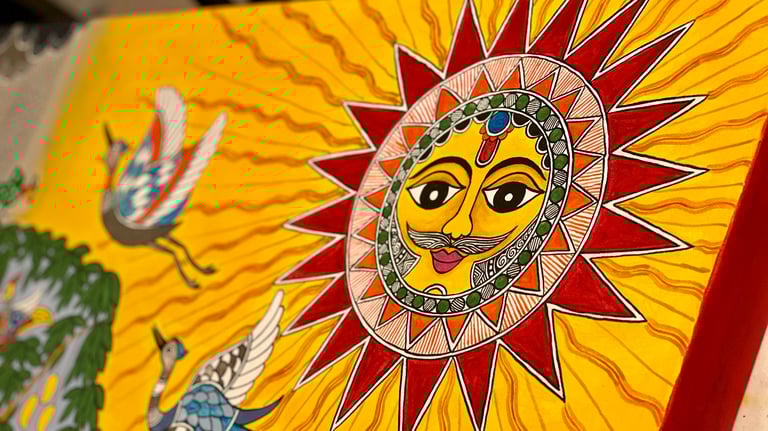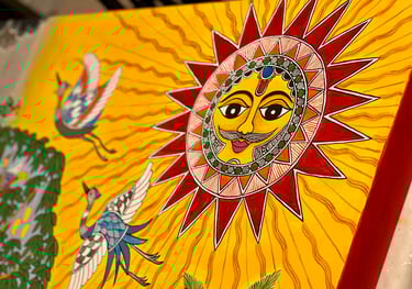 This vibrant colorful folk style has been passed down through generations from mothers to daughters, thriving in the northern part of Bihar in India and parts of Nepal.