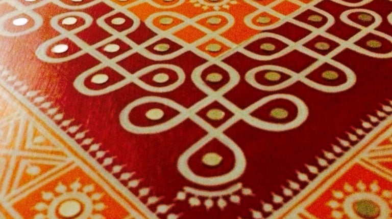 An ephemeral art, this style hails from the state of Tamil Nadu in India. This centuries old tradition has found a firm foothold in households in the southern part of India, practiced by the woman of the home.