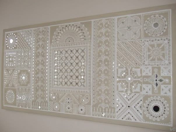 Practiced by the women of the Meena tribe in the deserts of the state of Rajasthan in India, this wall/floor art is quite intricate.
